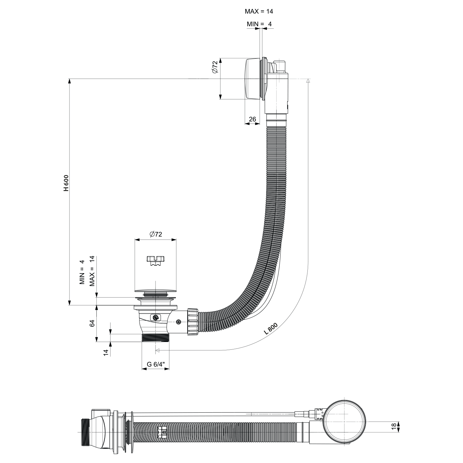 - Długość syfonu 800 mm