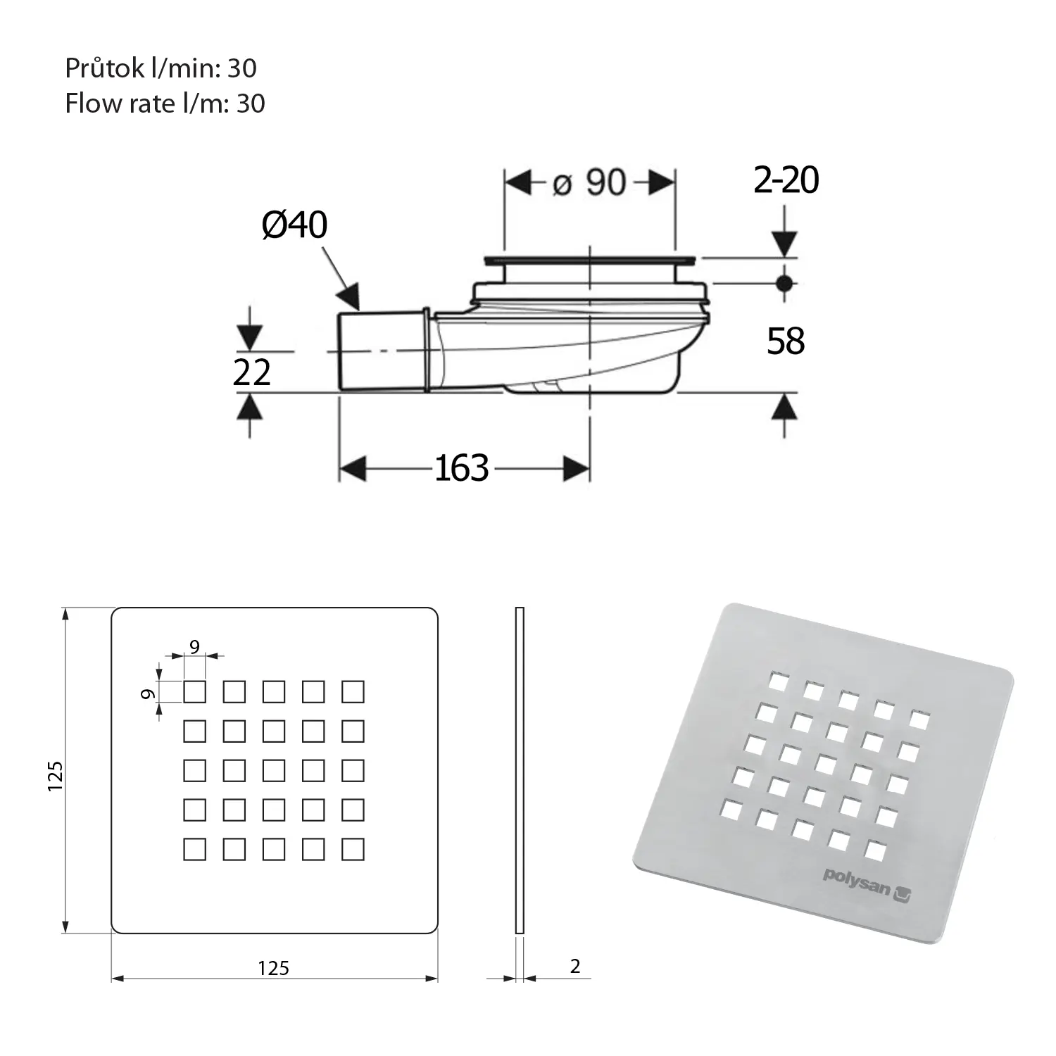 Syfon do brodzika prysznicowego 90 mm DN40 biały mat TRENECA 84999.10 Polysan