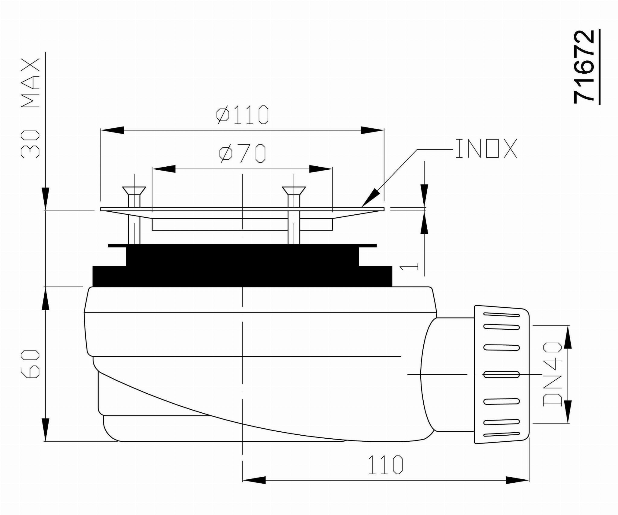 Syfon do brodzika prysznicowego z odpływem liniowym ⌀90 mm stal nierdzewna niski 71672 Polysan