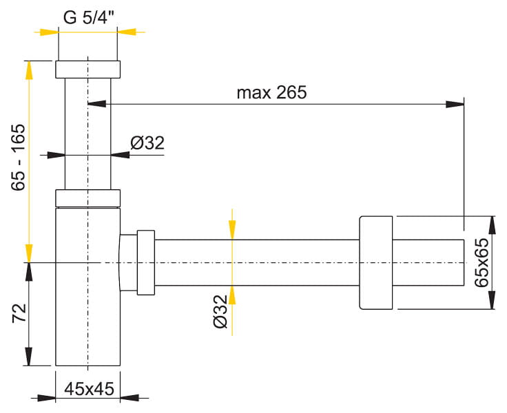 Syfon umywalkowy DESIGN, 5/4″ metalowy Ø 32 mm