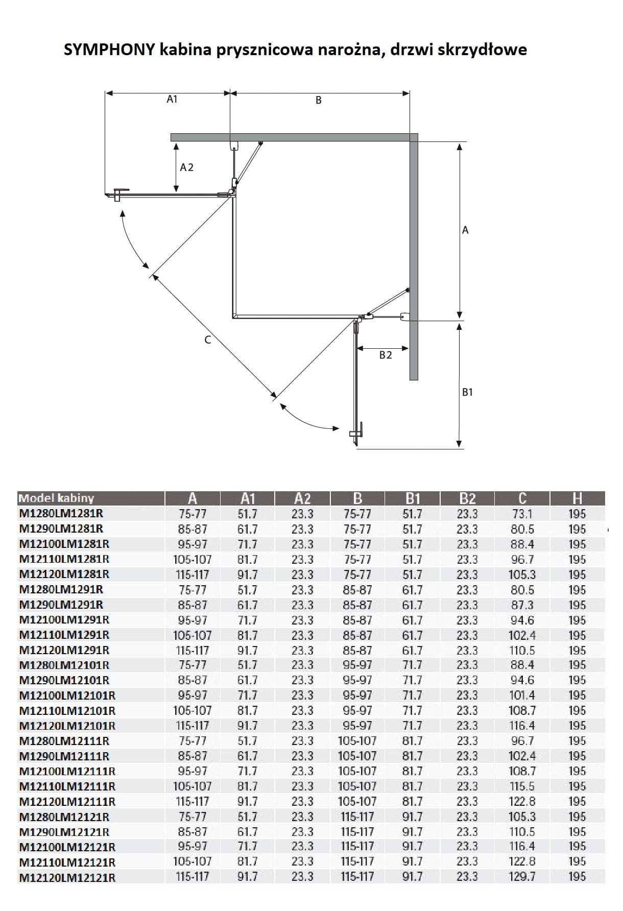 SYMPHONY Kabina prysznicowa narożna prostokątna 110x80x195 cm M12110LM1281RKND Sanotechnik