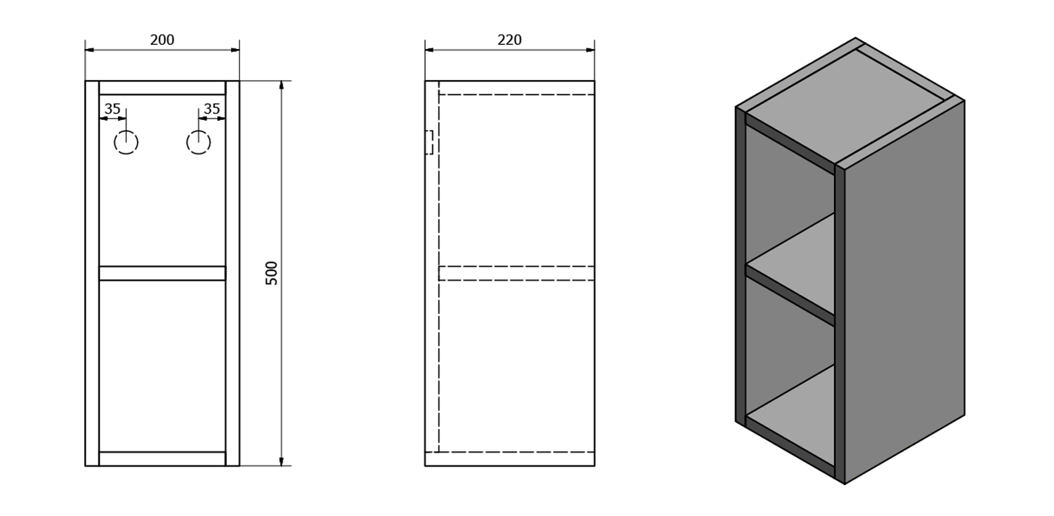 Szafka górna do powieszenia w rozmiarze 20x50x22 cm w kolorze brązowym.