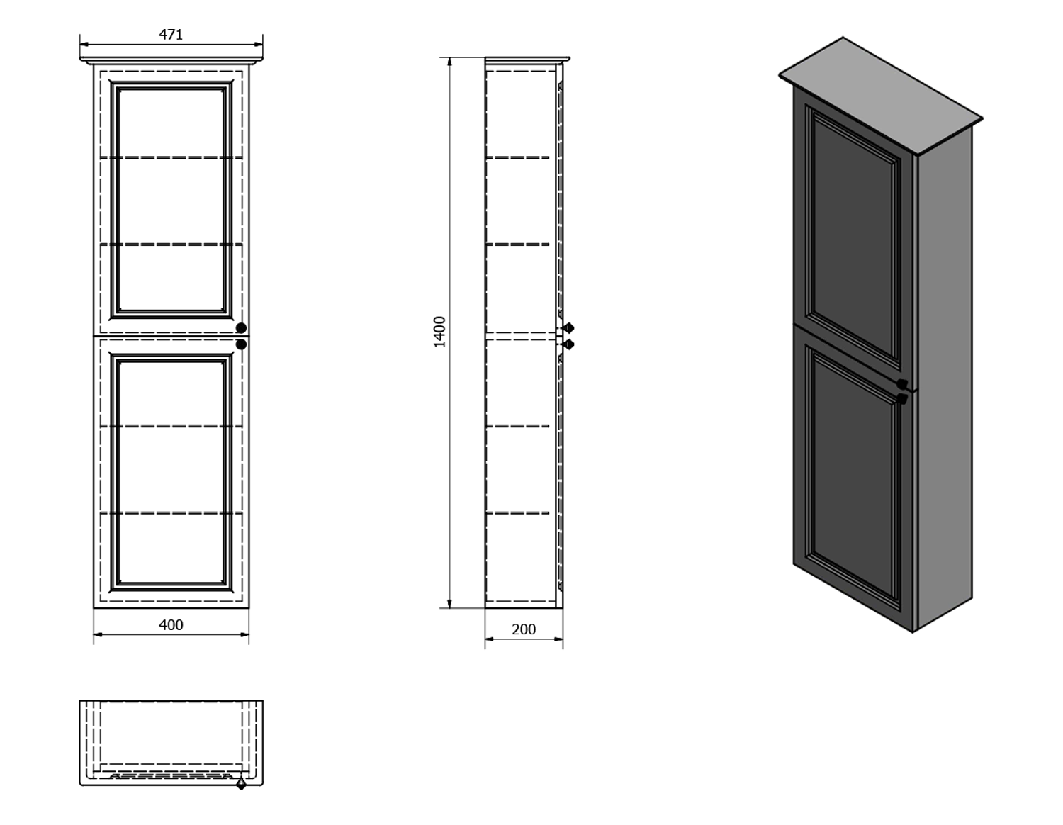 Klasyczny kształt ,zdobione uchwyty, szklane półki tworzą elegancką zawieszaną szafkę do łazienki.