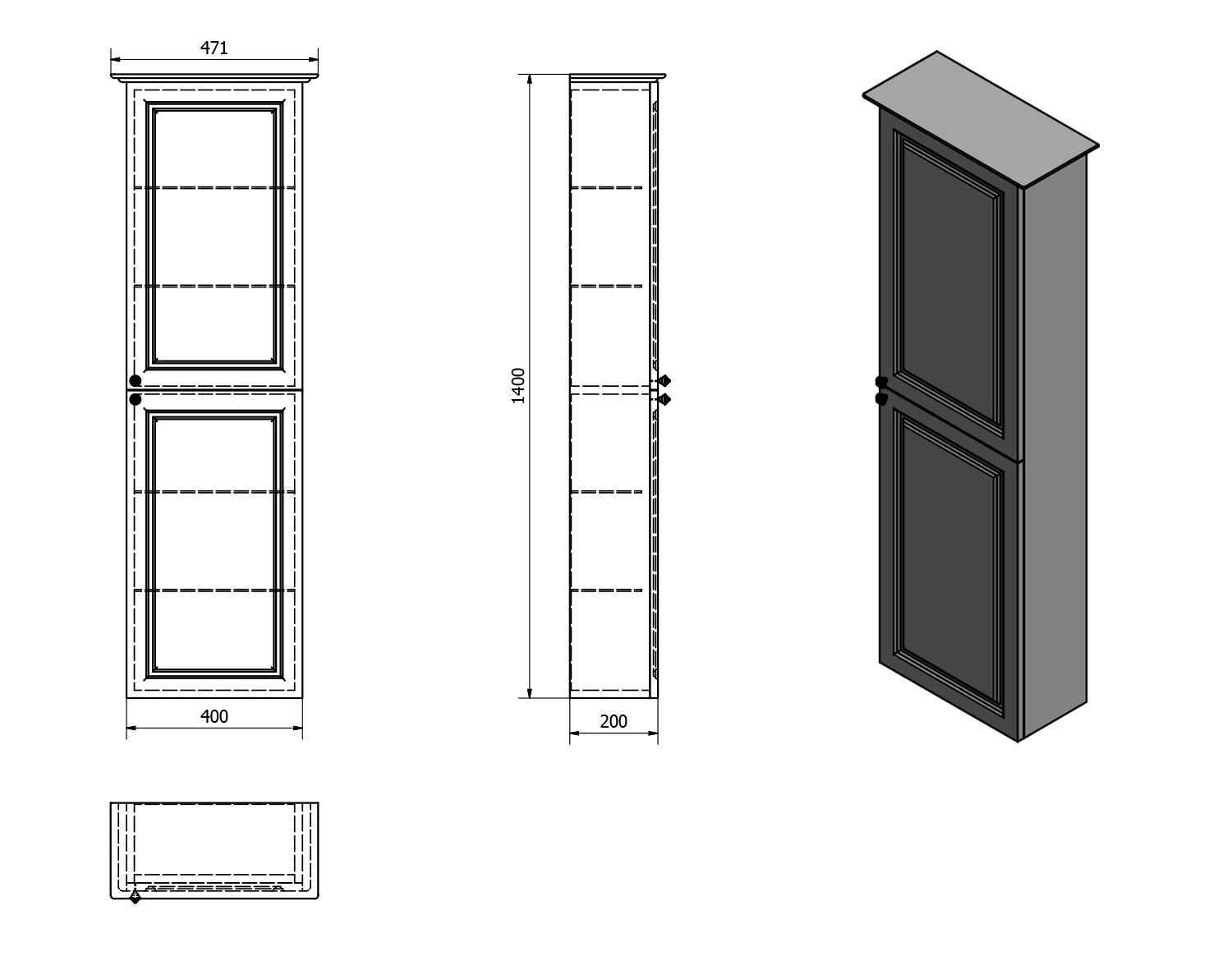 Klasyczny kształt ,zdobione uchwyty, szklane półki tworzą elegancką zawieszaną szafkę do łazienki.
