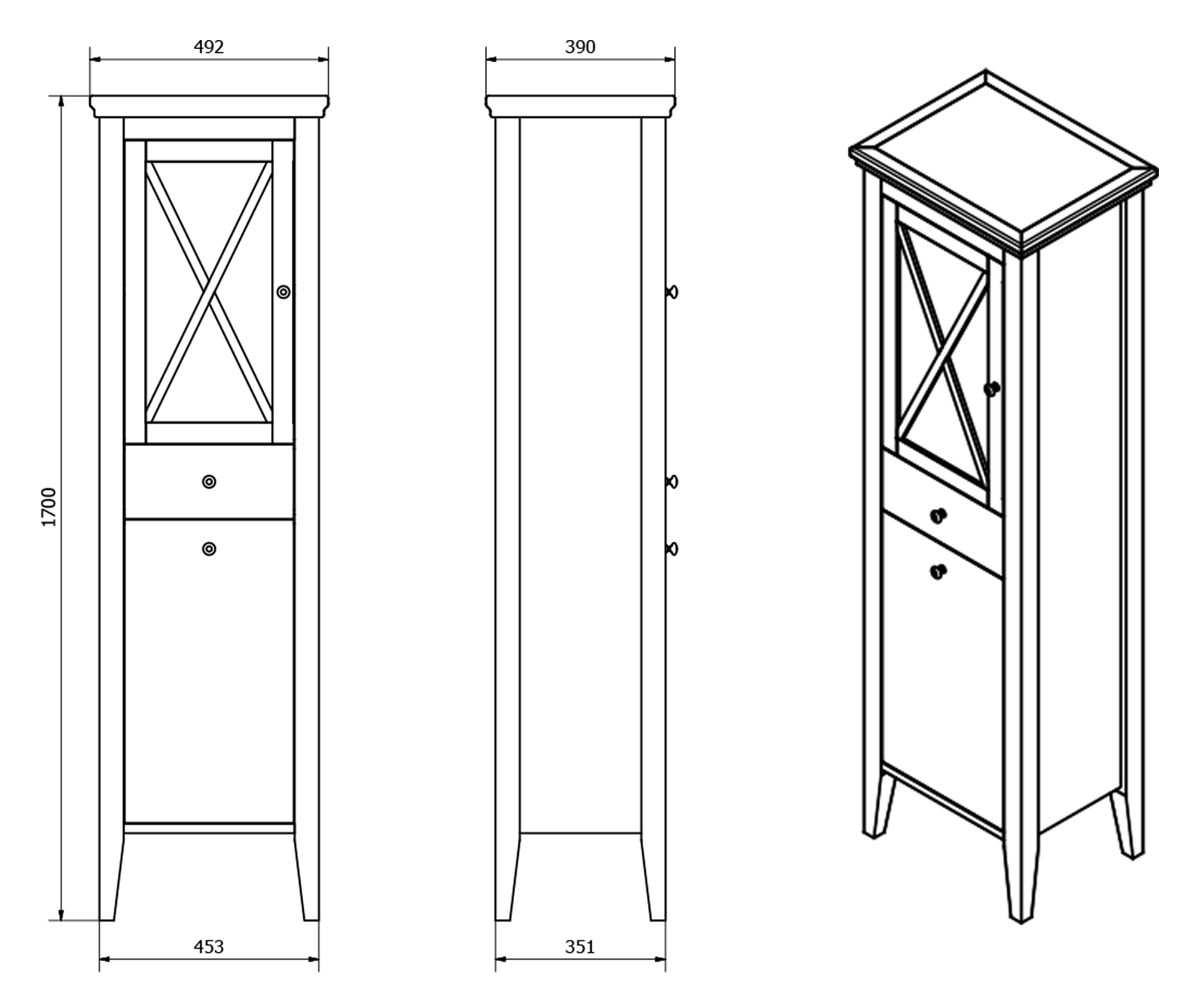 Klasyczny kształt, przeszklone drzwiczki, z 1 szufladą w środkowej części i koszem na bieliznę w dolnej części szafki tworzą praktyczną i funkcjonalną szafkę łazienkową która ozdobi każde wnętrze.