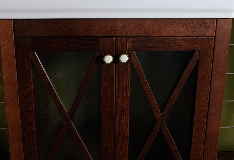 Klasyczny kształt i zdobione uchwyty wyróżnia serię mebli łazienkowych Cross. To elegancka i rustykalna wolno stojąca szafka do łazienki.