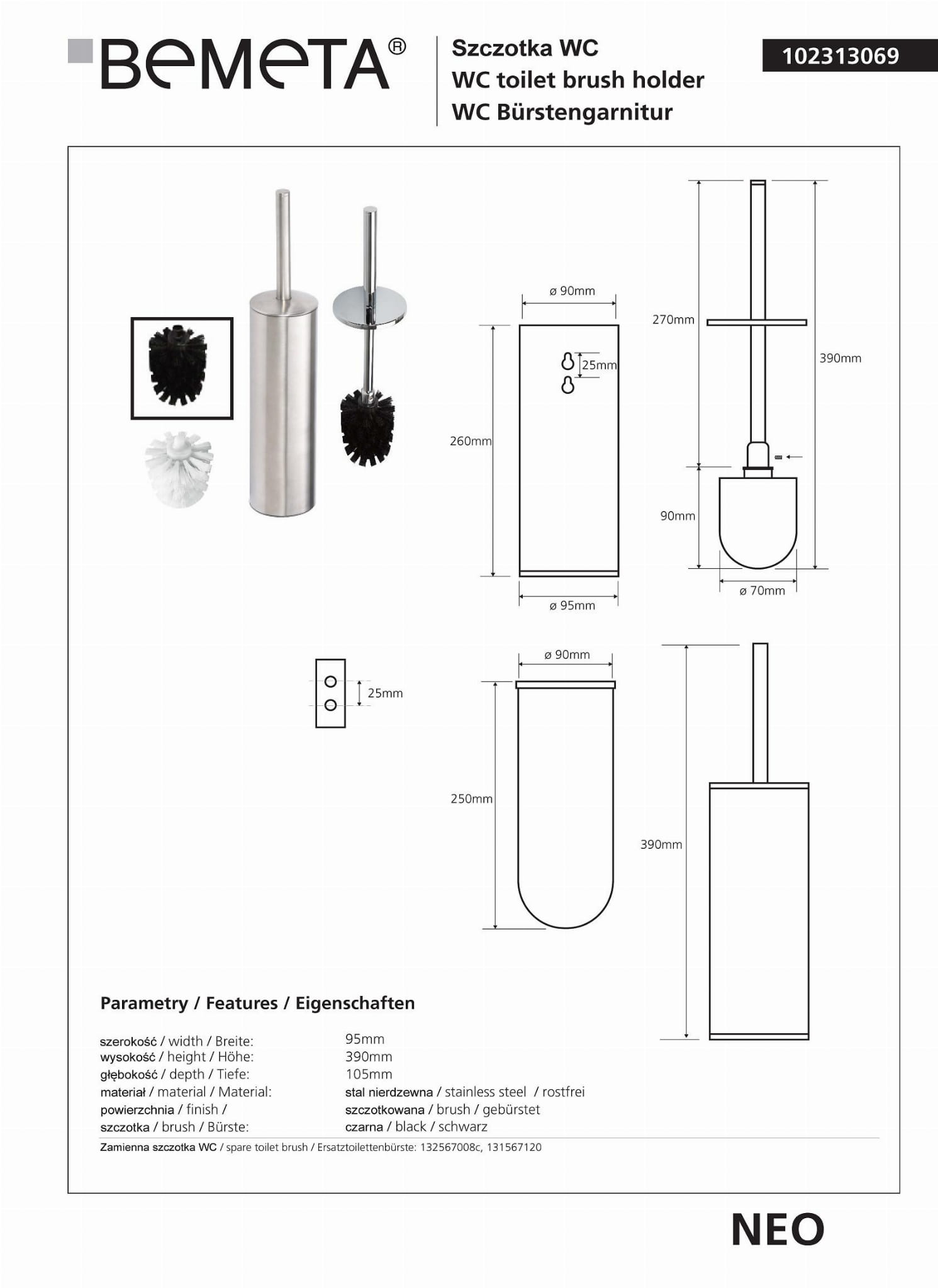 Szczotka WC stojąca lub wisząca czarna NEO 102313069 Bemeta