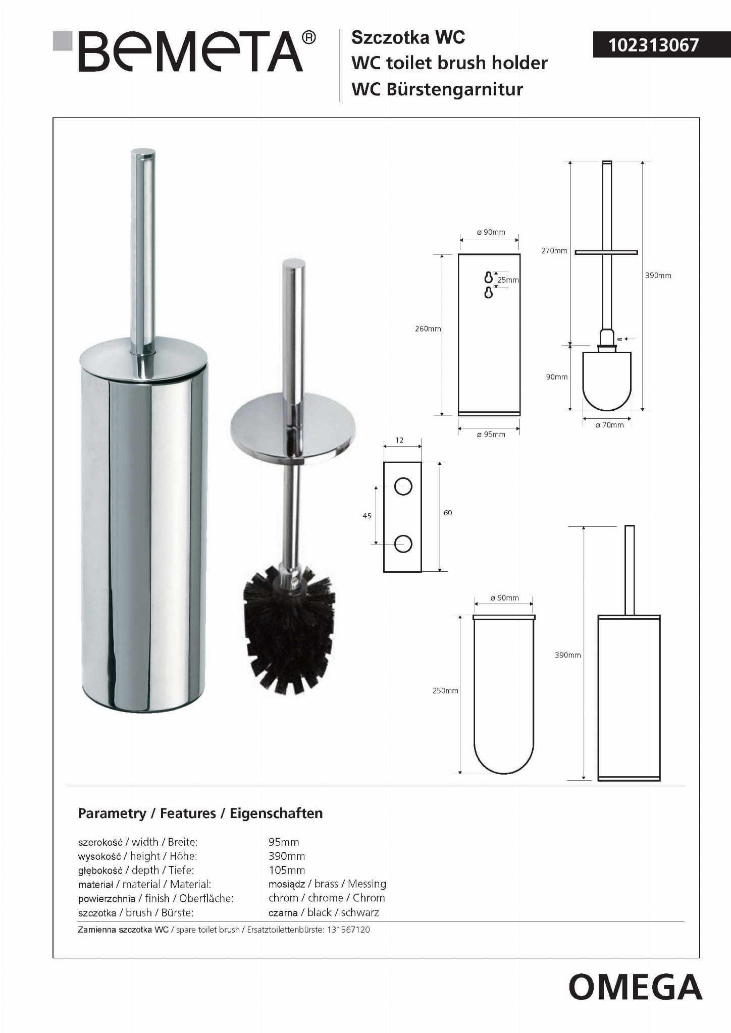 Szczotka WC stojąca lub wisząca czarna OMEGA 102313067 Bemeta