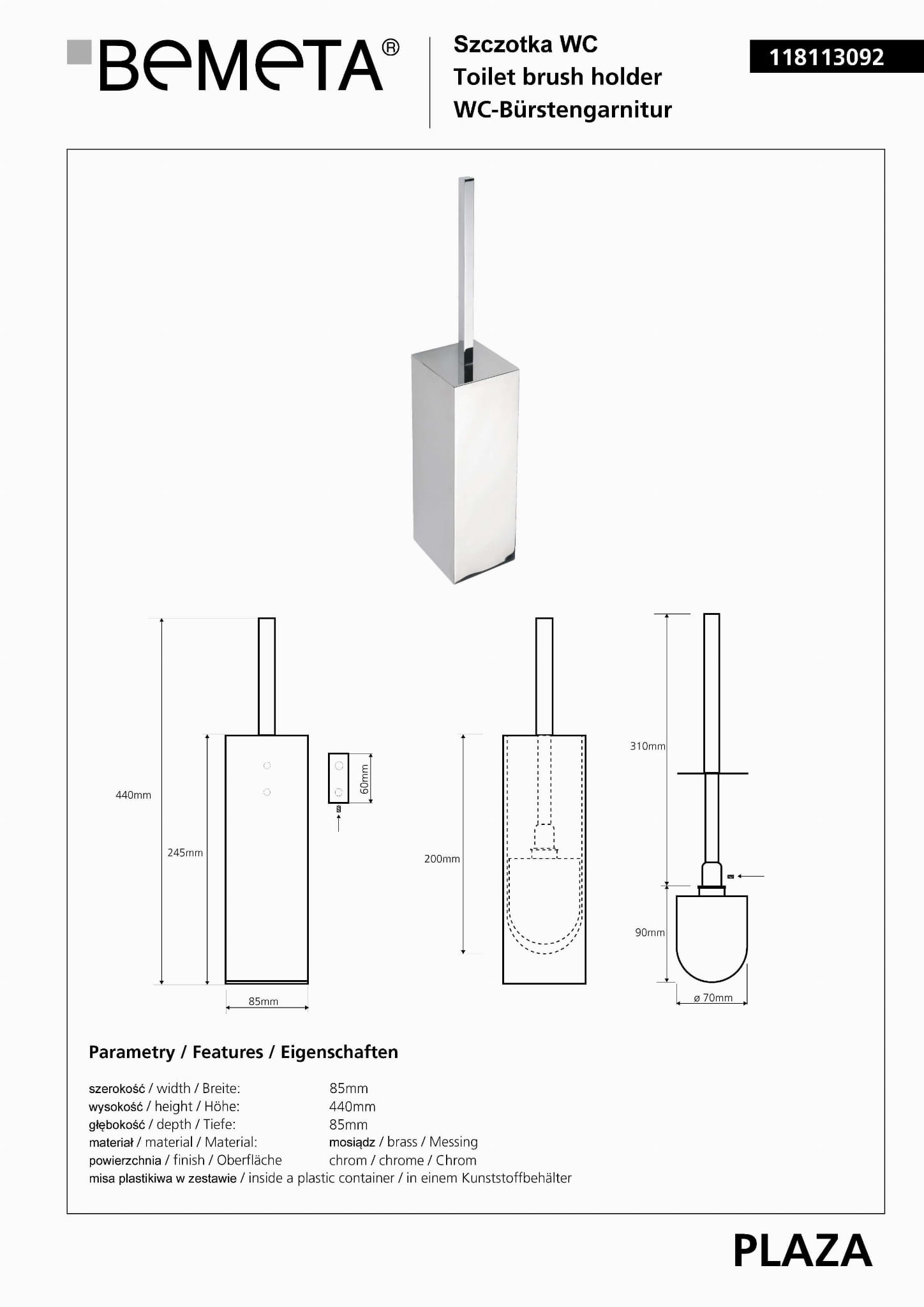 Szczotka WC stojąca PLAZA 118113092 Bemeta wymiary
