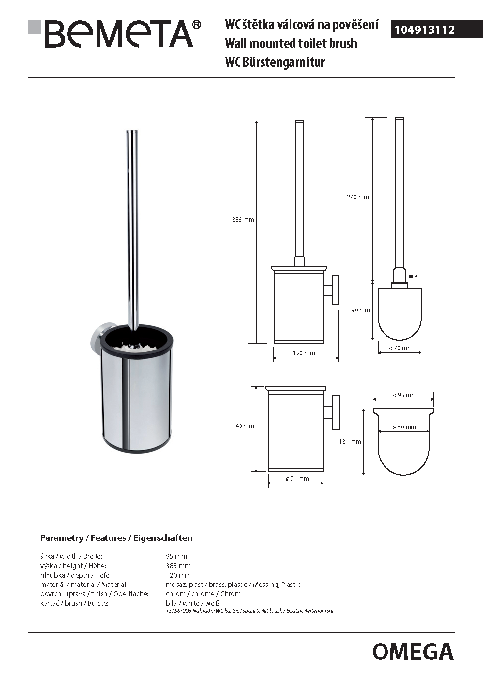 OMEGA Szczotka WC wisząca biała 104913112 Bemeta wymiary