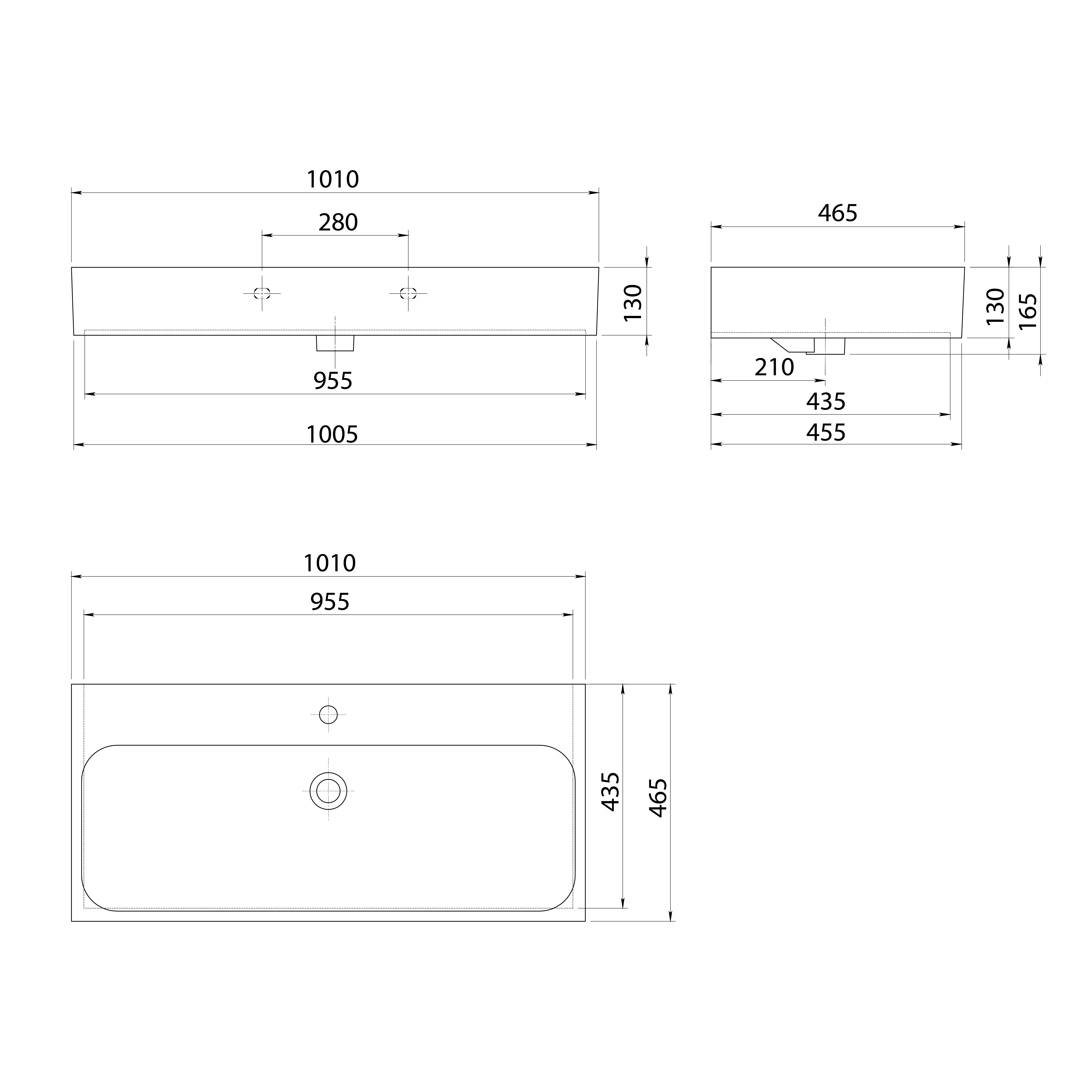 Umywalka ceramiczna prostokątna firmy Sapho z serii Toridi w wymiarze 101x46 cm.