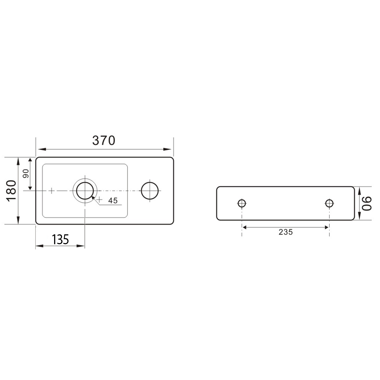 - Kształt umywalki prostokątna