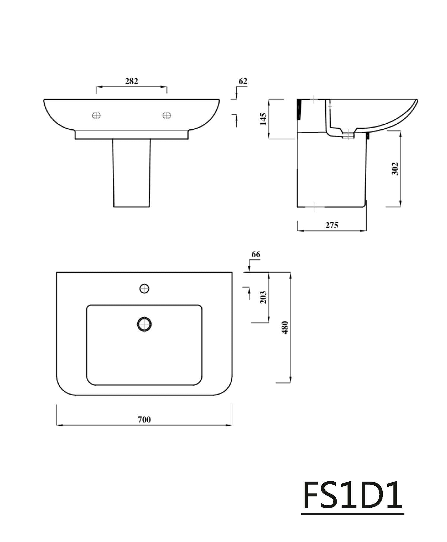 DORI Umywalka ceramiczna 70x48 cm FS1D1 - rysunek techniczny