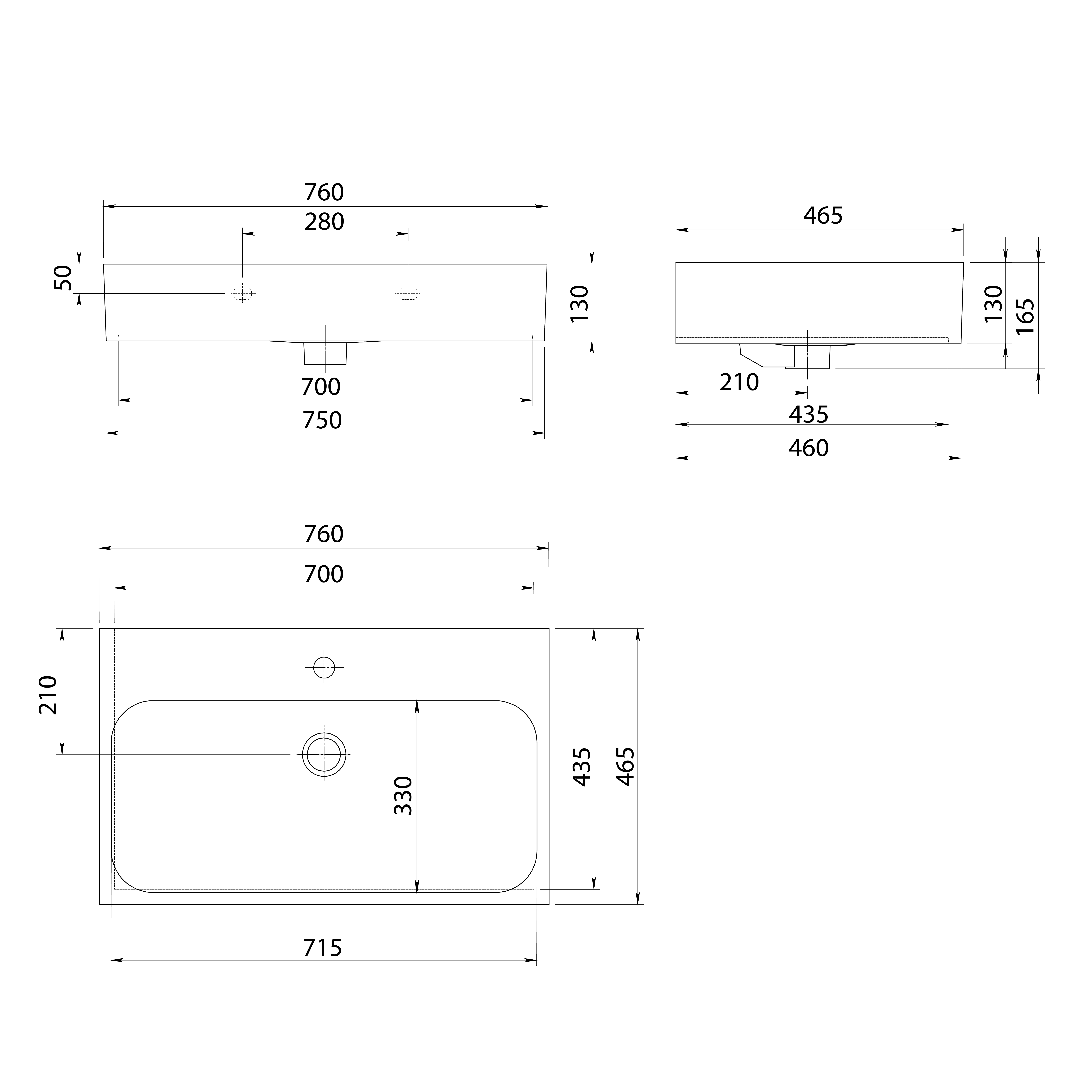 Umywalka ceramiczna prostokątna firmy Sapho z serii Toridi w wymiarze 76x46,5 cm.