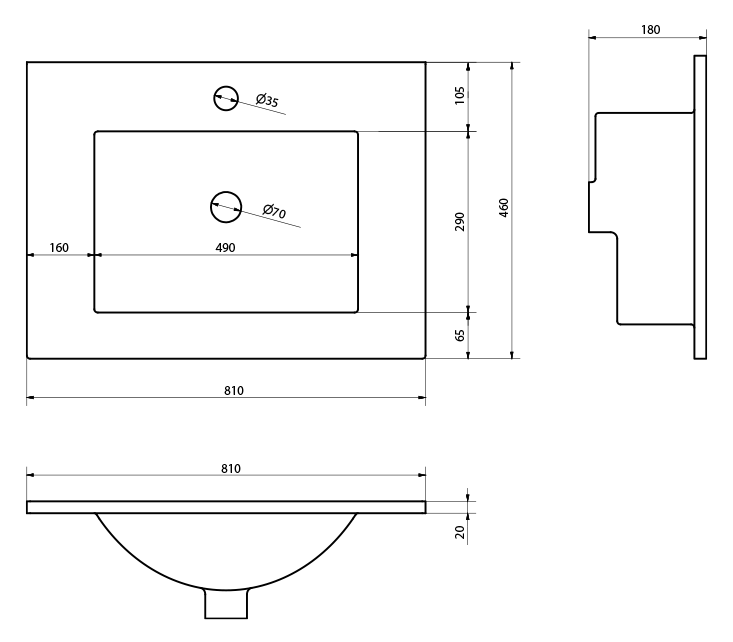 Umywalka ceramiczna meblowa 80 x 46 cm biała SLIM 1601-80 Sapho