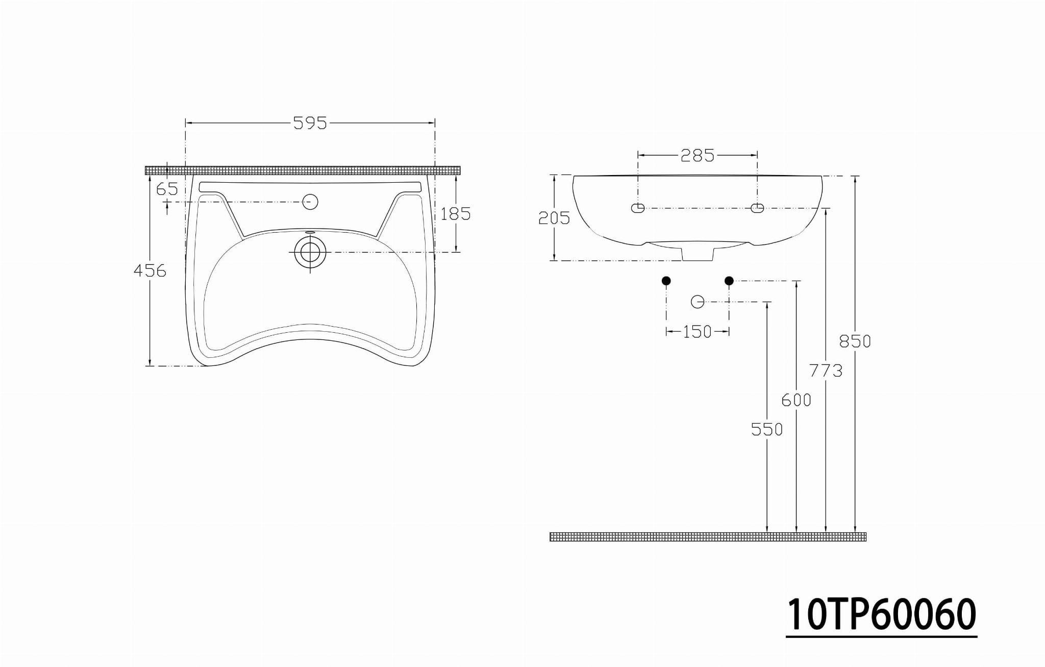 Umywalka dla niepełnosprawnych 59x45,5 cm (3001) 10TP60060 - rysunek techniczny