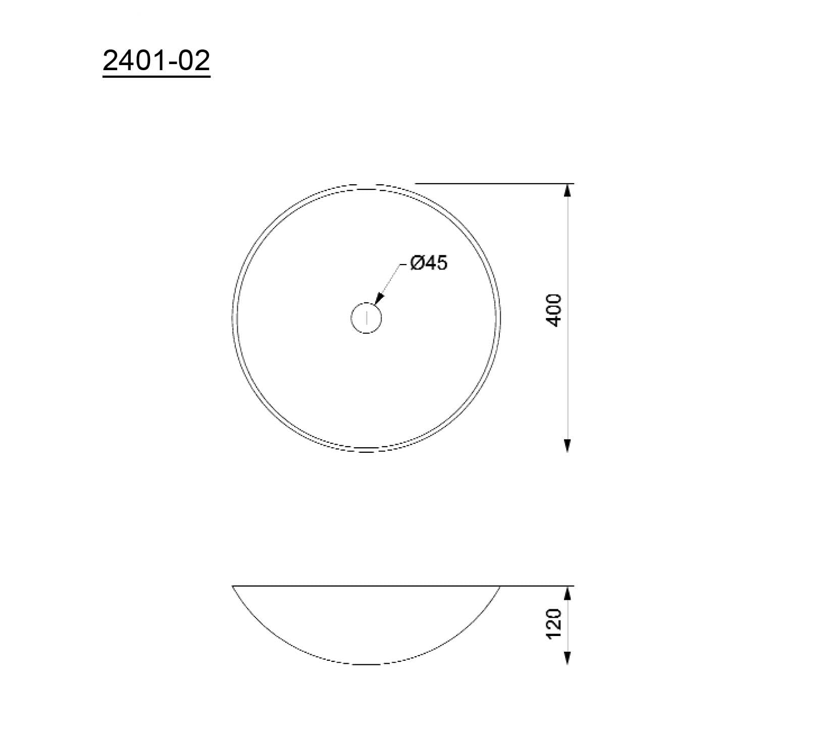 BLOK Umywalka kamienna 40x12 cm matowy niebieski kamień 2401-02 - rysunek techniczny