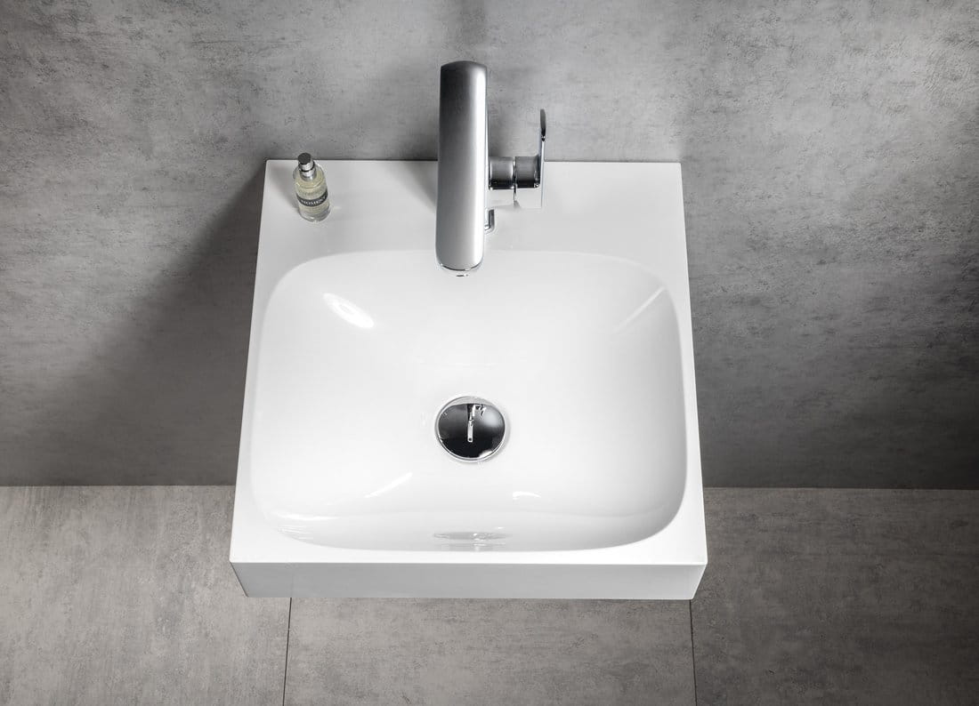 Materiał, z jakiego wykonano umywalkę, powstał z mieszanki mielonego wapienia, piasku, żywicy poliestrowej i barwników, zaś powierzchnia gotowego produktu pokryta została powłoką z żywicy poliestrowej, tzw. GELCOAT, która ułatwia czyszczenie i zapewnia stabilność koloru. Umywalki kompozytowe są nie tylko designowe, ale również praktyczne. Kompozyt pozwala zaprojektować umywalki wytwornych kształtów, z różnej wielkości półeczkami, a dzięki gładkiej powierzchni ich utrzymanie w czystości jest bardzo łatwe.