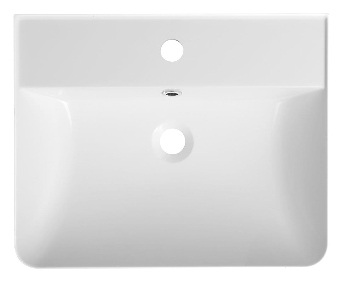 Umywalka prostokątna wykonana z kompozytu w kolorze białym.
