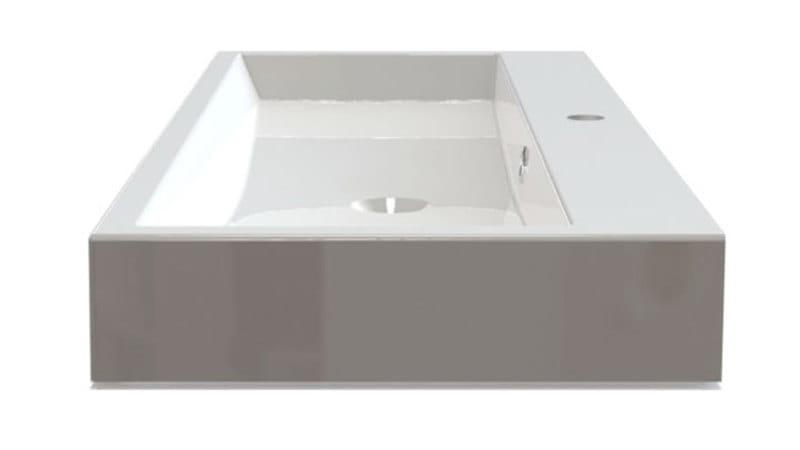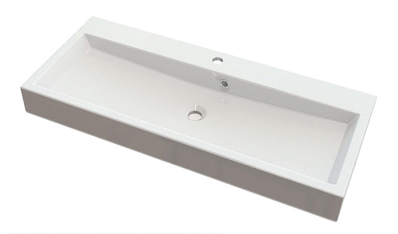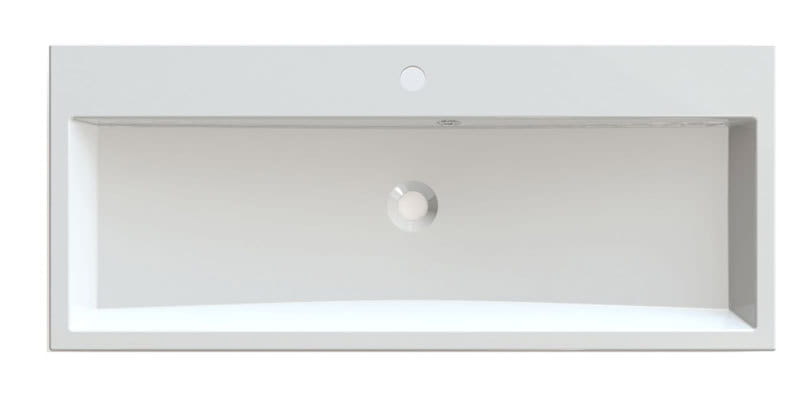 Umywalka z kompozytu marmurowego czeskiej firmy SAPHO o wymiarach: 100x10x42 cm. Jest to materiał o długiej żywotności i twardości. Powierzchnia umywalki jest idealnie gładka, a dodatkową zaletą użytego do produkcji materiału jest możliwość uzyskania doskonale prostych krawędzi i kątów.
