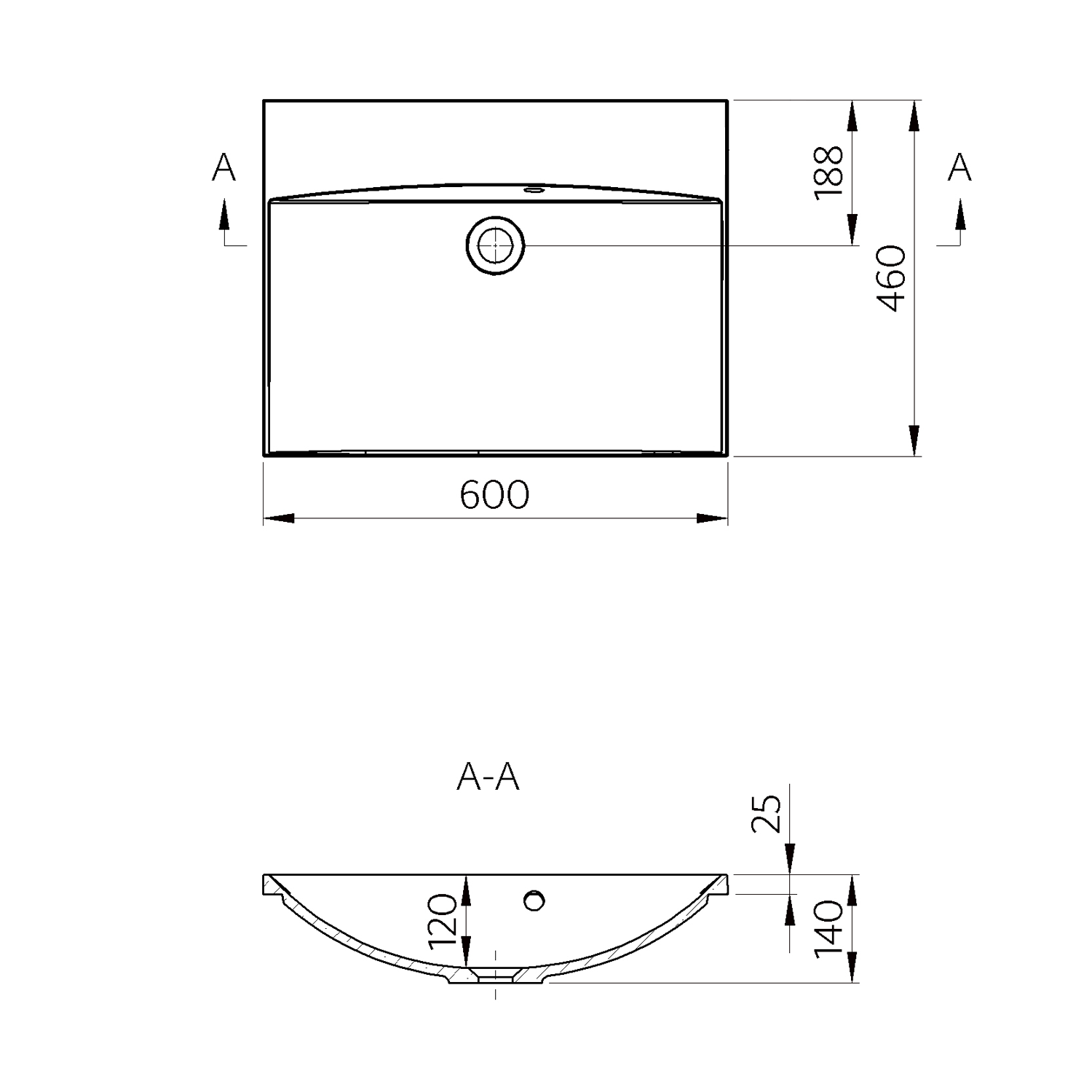 - Kształt umywalki prostokątna