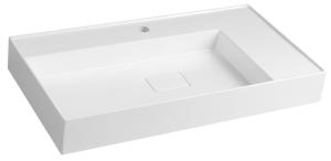Umywalka kompozytowa koloru białego bez przelewu z otworem na baterię o wymiarach 83x11x44 cm.