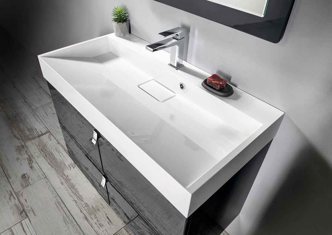 Umywalka z kompozytu marmurowego czeskiej firmy SAPHO o wymiarach: 90x9x46 cm. Jest to materiał o długiej żywotności i twardości. Powierzchnia umywalki jest idealnie gładka, a dodatkową zaletą użytego do produkcji materiału jest możliwość uzyskania doskonale prostych krawędzi i kątów.