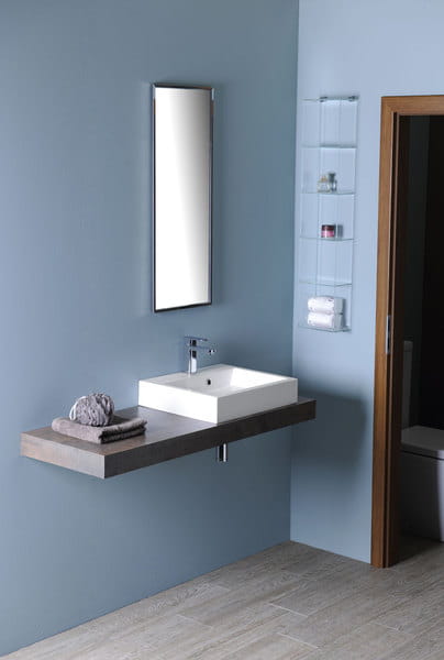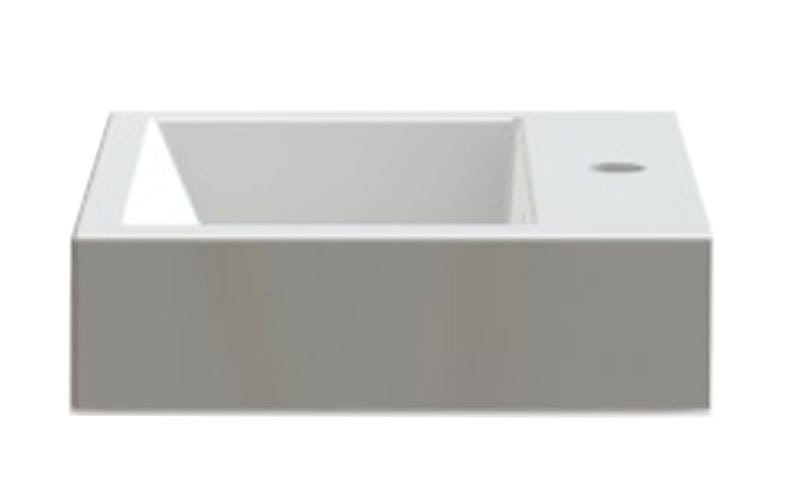 Umywalka z kompozytu marmurowego czeskiej firmy SAPHO o wymiarach: 42x10x36 cm. Jest to materiał o długiej żywotności i twardości. Powierzchnia umywalki jest idealnie gładka, a dodatkową zaletą użytego do produkcji materiału jest możliwość uzyskania doskonale prostych krawędzi i kątów.