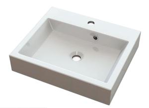 Umywalka wisząca z możliwością postawienia jej na blacie. Z jednym otworem na baterię i z przelewem.