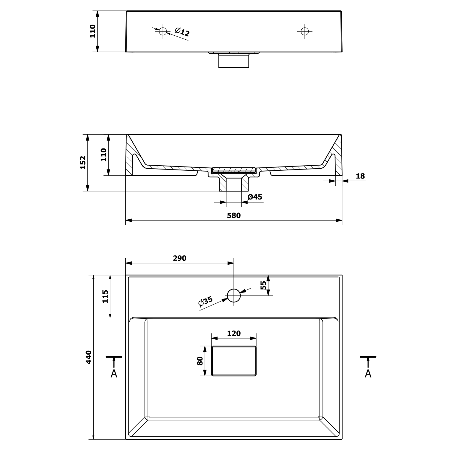 Umywalka kompozytowa nablatowa 58x44 cm biały z otworem GODIVA GU058 Sapho