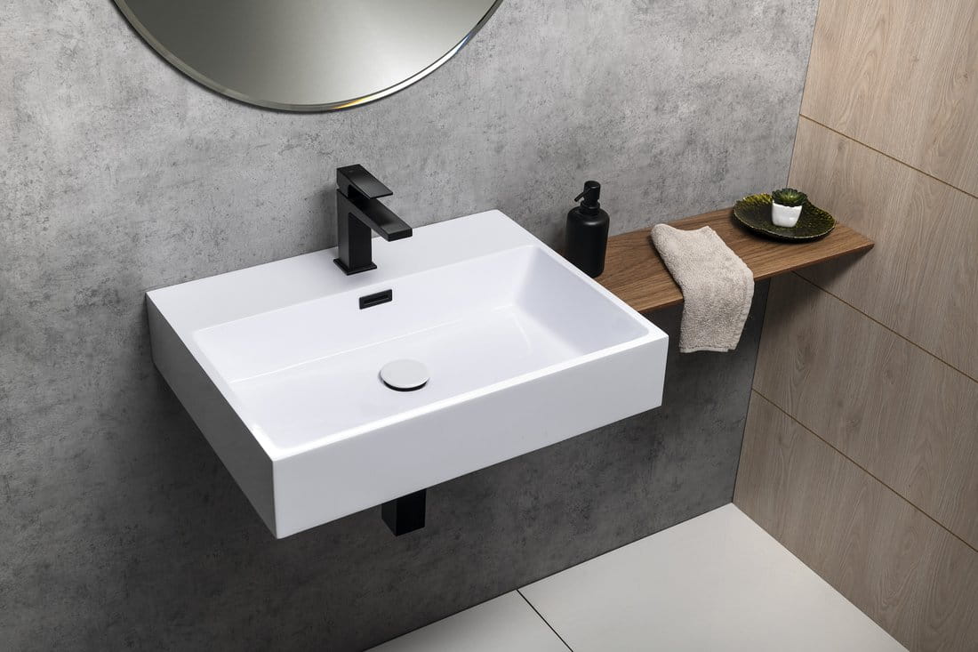 - Kształt umywalki prostokątna