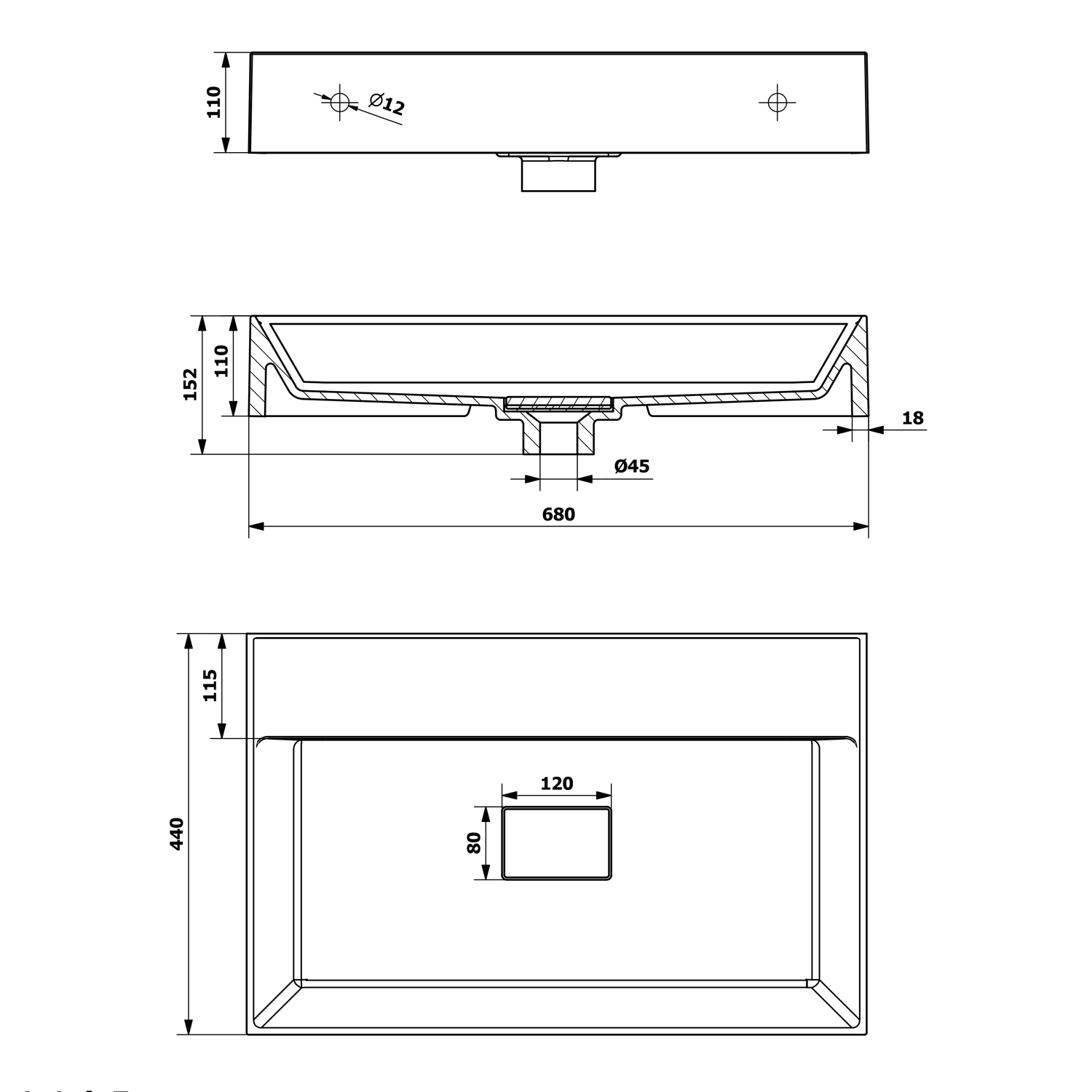 - Kształt umywalki prostokątna