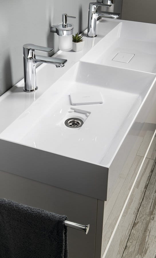Umywalka kompozytowa podwójna 119x44 cm biały GODIVA GU119 Sapho