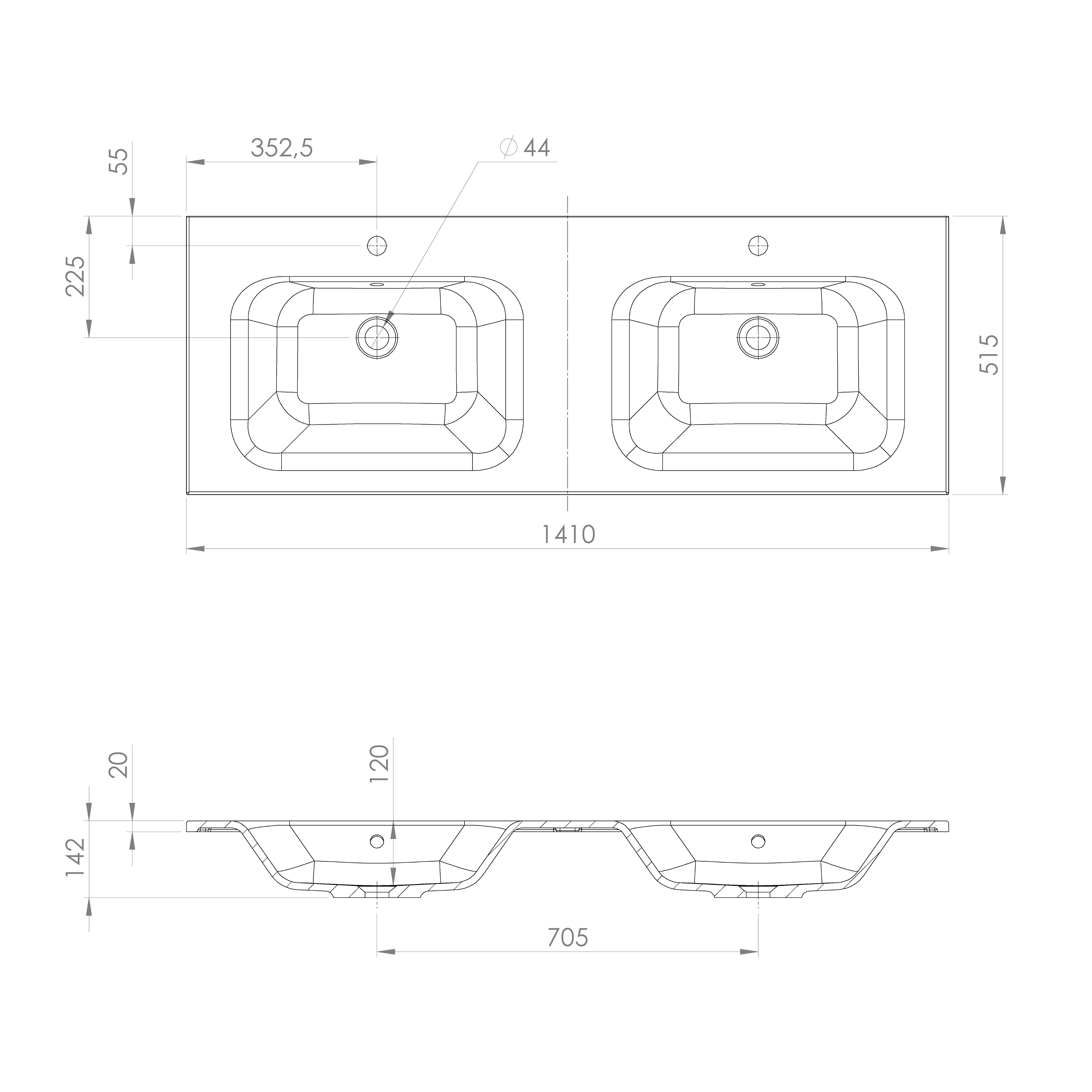 Umywalka kompozytowa podwójna 141 x 51,5 cm ARECA AC141 Sapho