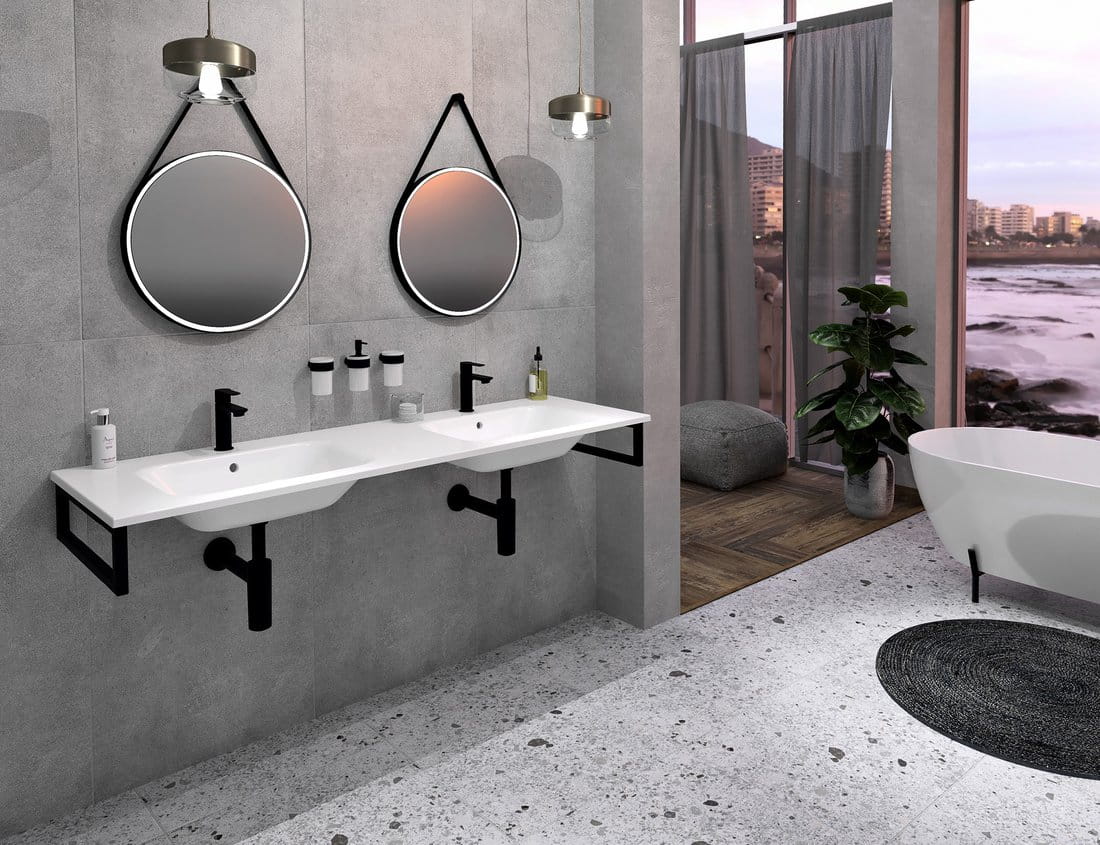Umywalki ARECA wykonywane są z kompozytu w kolorze białym. Do wyboru umywalki podwójne lub z blatem z lewej lub prawej strony.