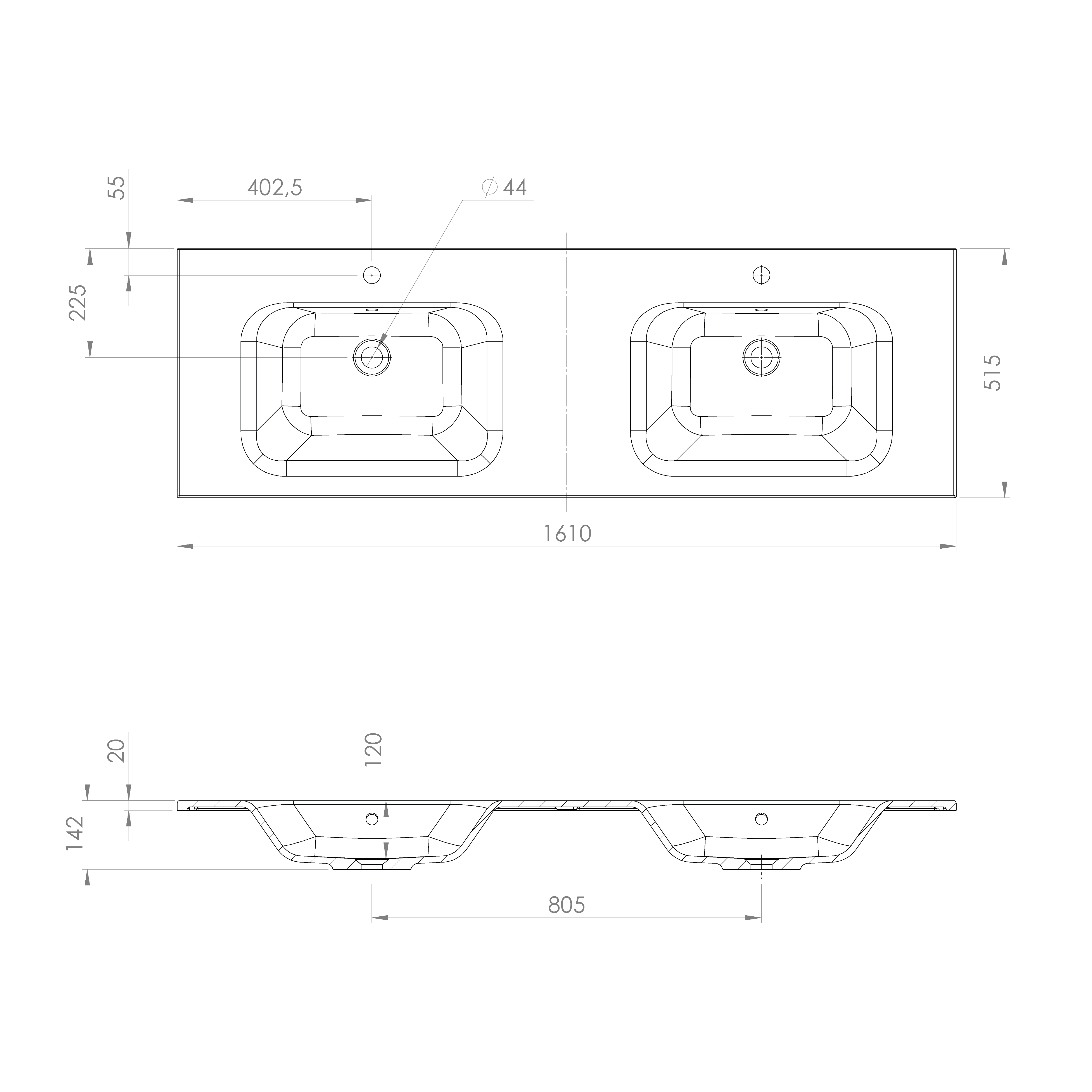 Umywalka kompozytowa podwójna 161 x 51,5 cm ARECA AC161 Sapho