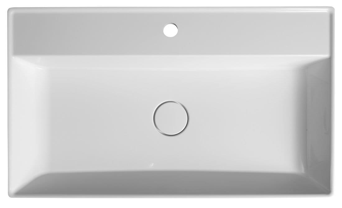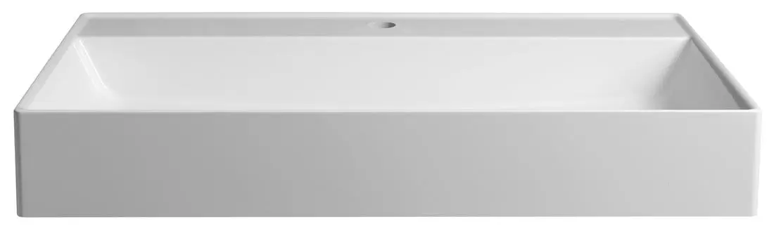 Umywalka prostokątna wykonana z kompozytu w kolorze białym z 1 otworem bez przelewu.