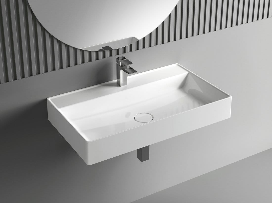 Materiał, z jakiego wykonano umywalkę, powstał z mieszanki mielonego wapienia, piasku, żywicy poliestrowej i barwników, zaś powierzchnia gotowego produktu pokryta została powłoką z żywicy poliestrowej, tzw. GELCOAT, która ułatwia czyszczenie i zapewnia stabilność koloru. Umywalki kompozytowe są nie tylko designowe, ale również praktyczne. Kompozyt pozwala zaprojektować umywalki wytwornych kształtów, z różnej wielkości półeczkami, a dzięki gładkiej powierzchni ich utrzymanie w czystości jest bardzo łatwe.