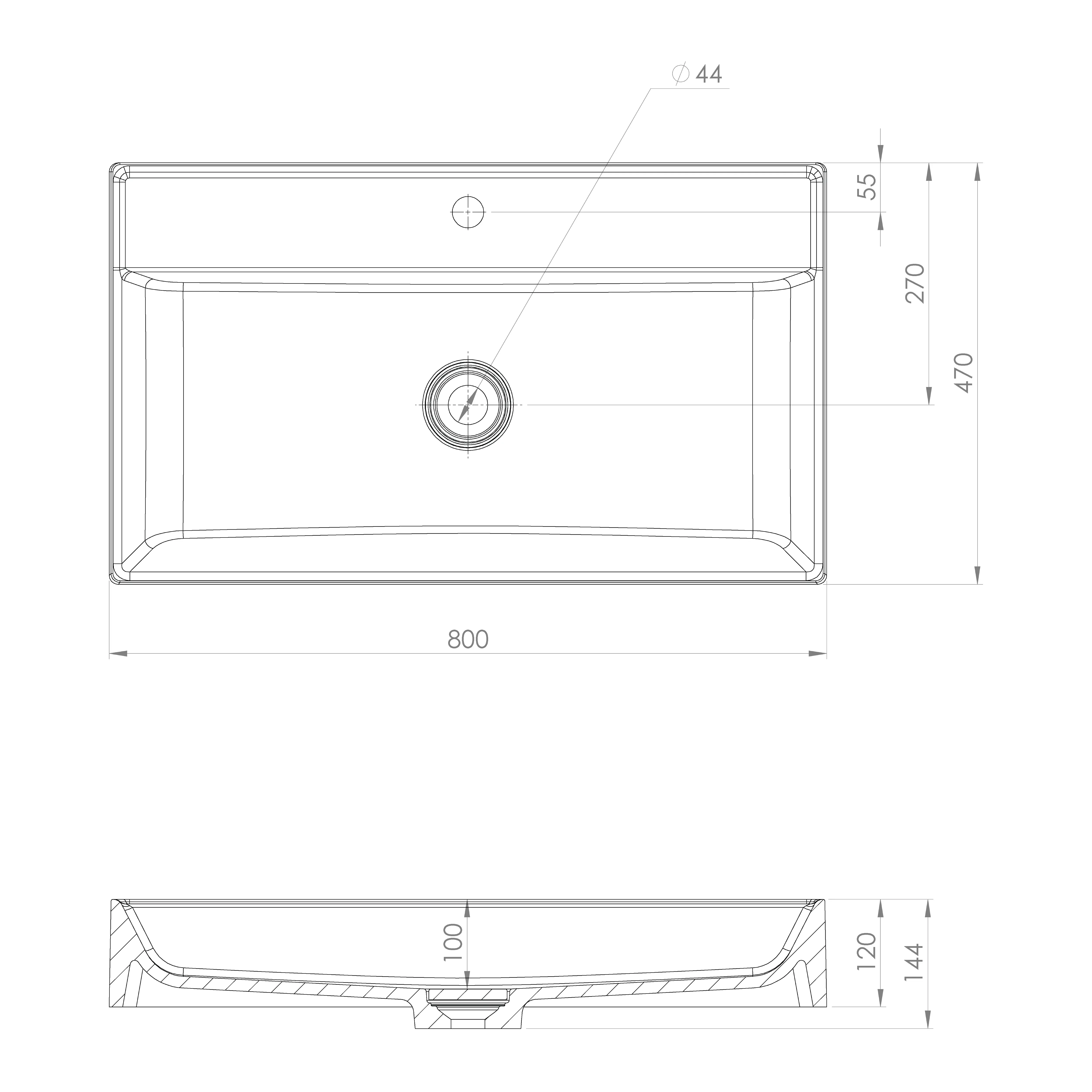 - Kształt umywalki prostokątna