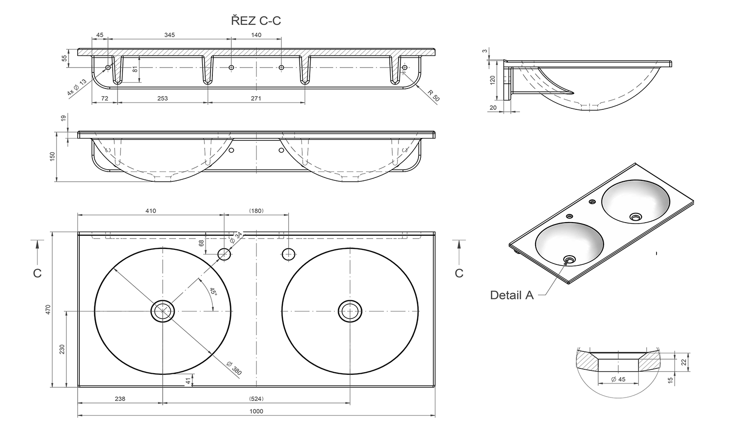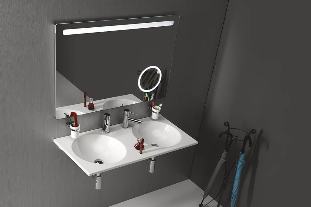 Serię JUNO cechują okrągłe komory zintegrowane z blatem, tworzące jednolitą całość.