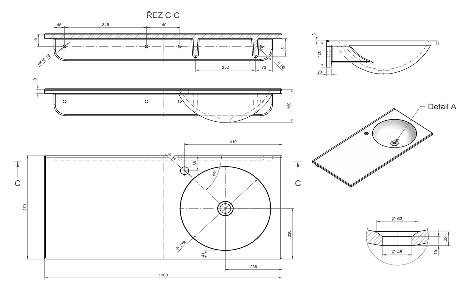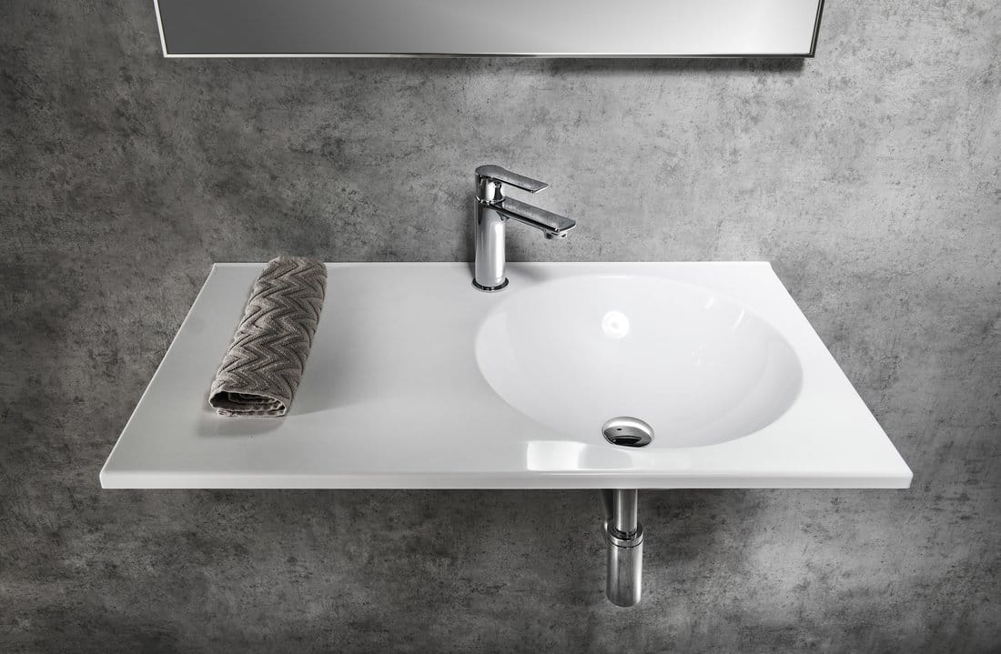 Umywalka prawa z blatem po lewej stronie, kompozytowa do zawieszenia.