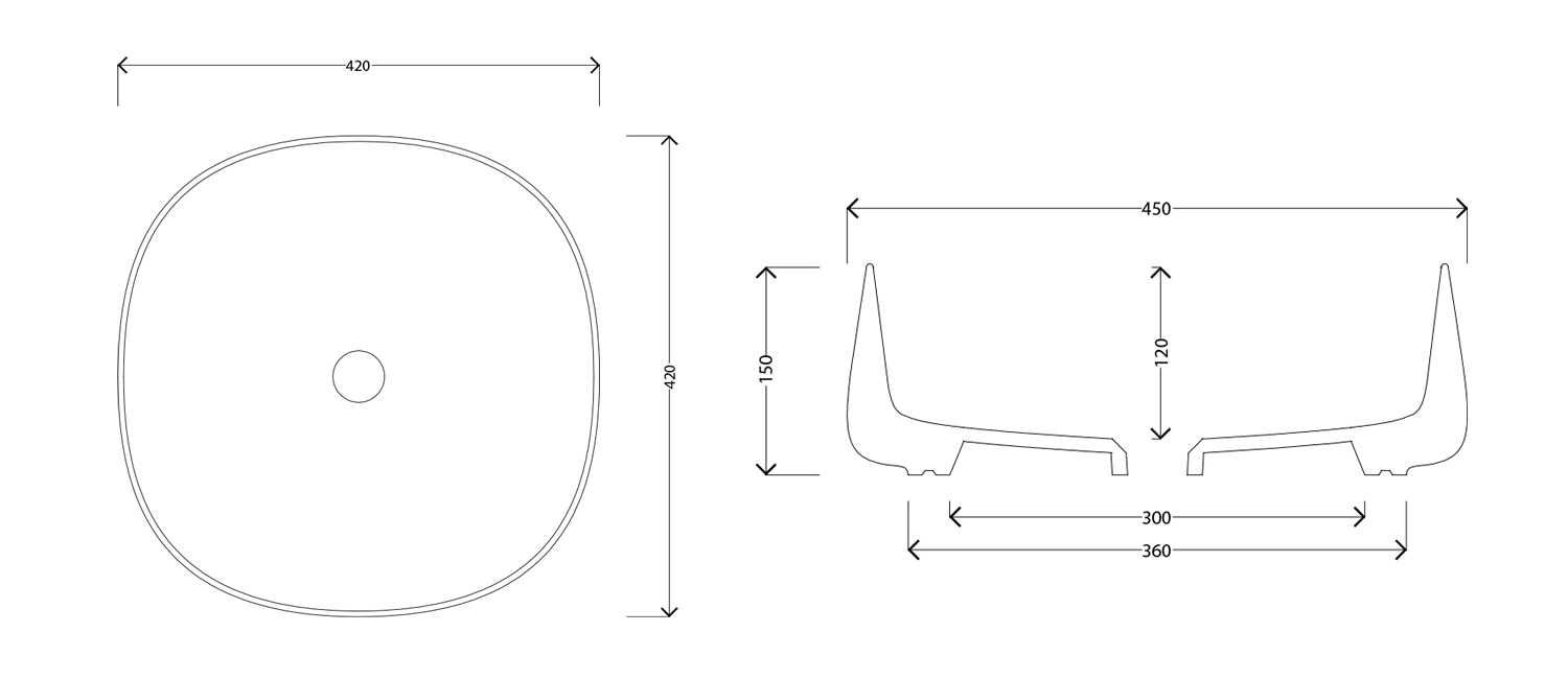 JUMPER Umywalka ceramiczna nablatowa 42x15x42 cm, bez odpływu WH072 - rysunek techniczny