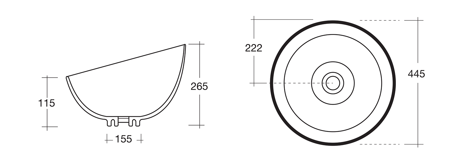 - średnica: Ø 44,5x 26,5 (11,5)x 44,5 cm