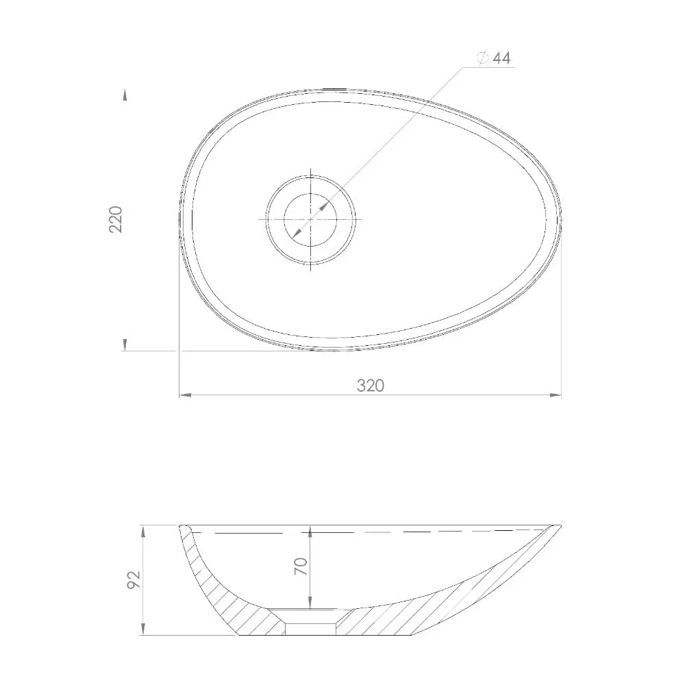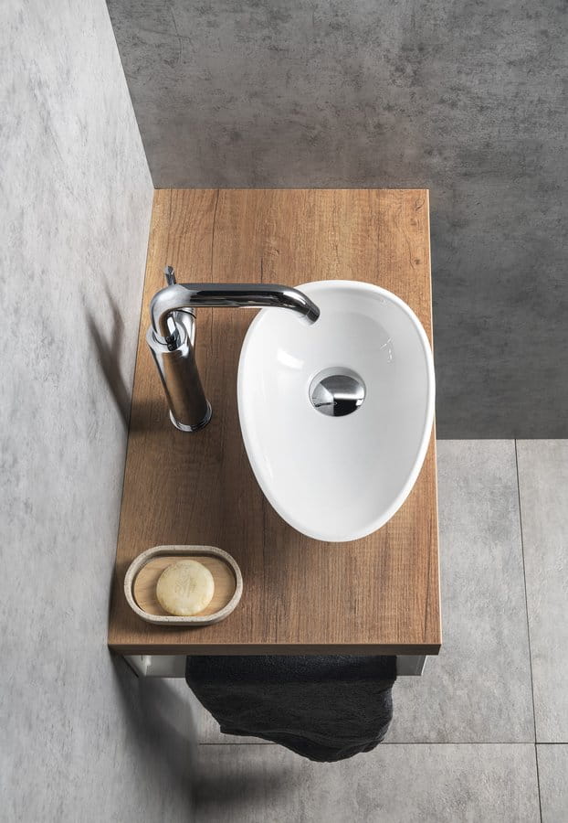 Umywalka kompozytowa z serii SMALL do postawienia na blacie z lanego marmuru.