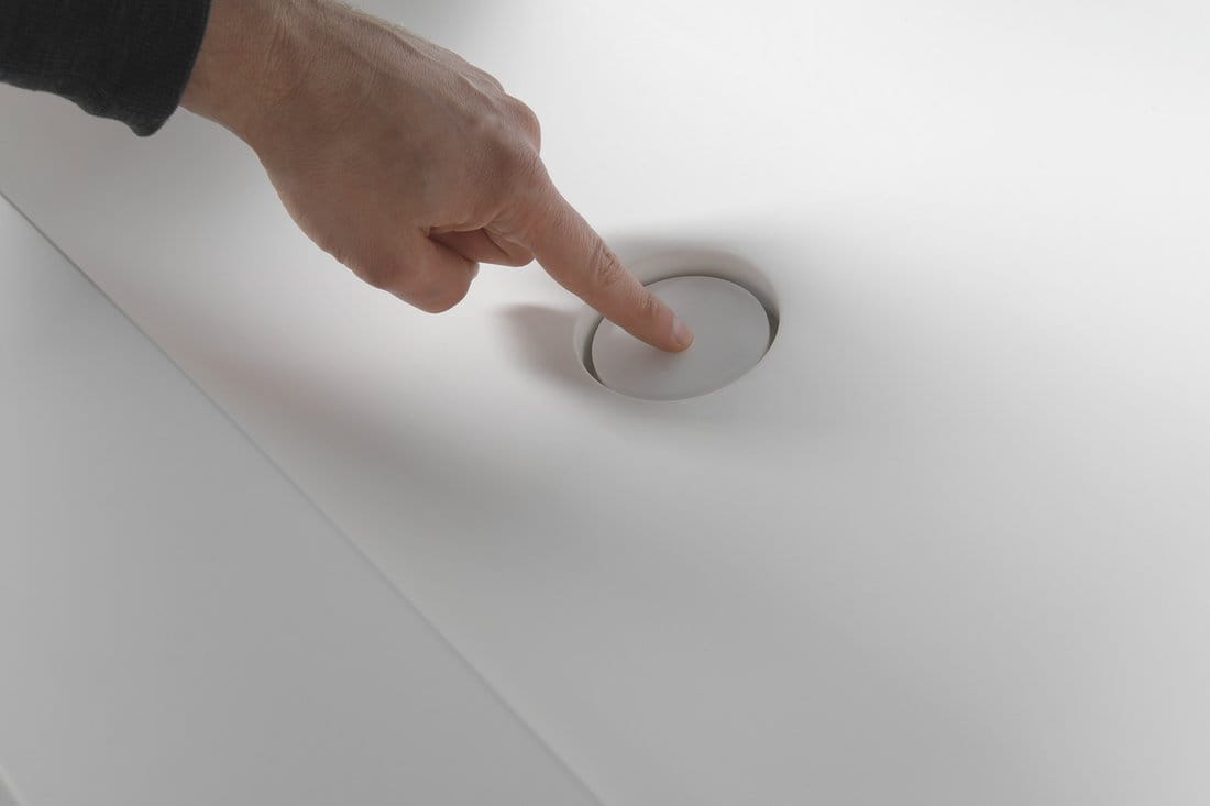 Umywalki EMICO wykonywane są na zamówienie z kompozytu Rockstone. Bardzo szerokie umywalki na wymiar pozwalają rozwiązać do 3 miejsc do mycia. Korek odpływowy umywalki jest wykonany z tego samego materiału co umywalka. W pozycji otwartej korek jest zlicowany z dnem umywalki.