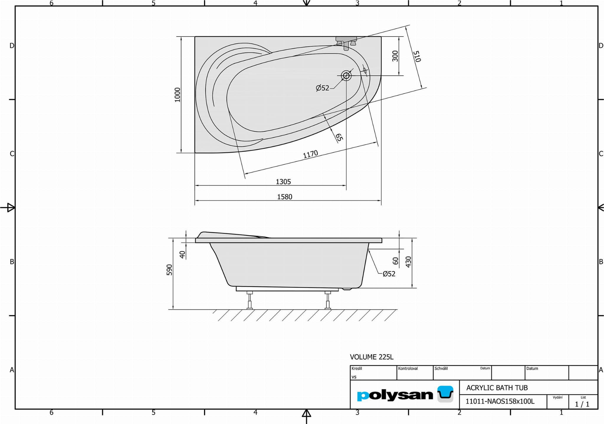 Wanna akrylowa asymetryczna 158 x 100 cm (lewa) NAOS 11011 Polysan