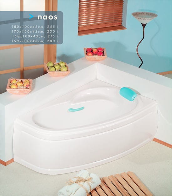 Wanna akrylowa Naos R (prawa) 158x100 cm o ciekawym wyglądzie zewnętrznym i ładnie wyprofilowanym wnętrzu. Posiada nietypowy rozmiar, co może mieć znaczenie w przypadku dokładnego dopasowania do łazienki. Doskonale sprawdza się w małych łazienkach.
