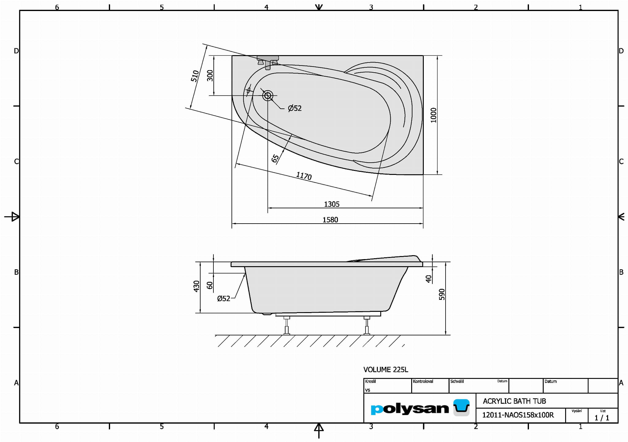 Wanna akrylowa asymetryczna 158 x 100 cm (prawa) NAOS 12011 Polysan