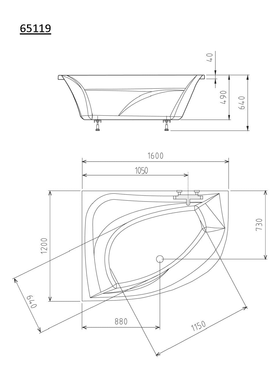 TANYA Wanna akrylowa asymetryczna 160x120 cm (lewa) 65119 rysunek techniczny