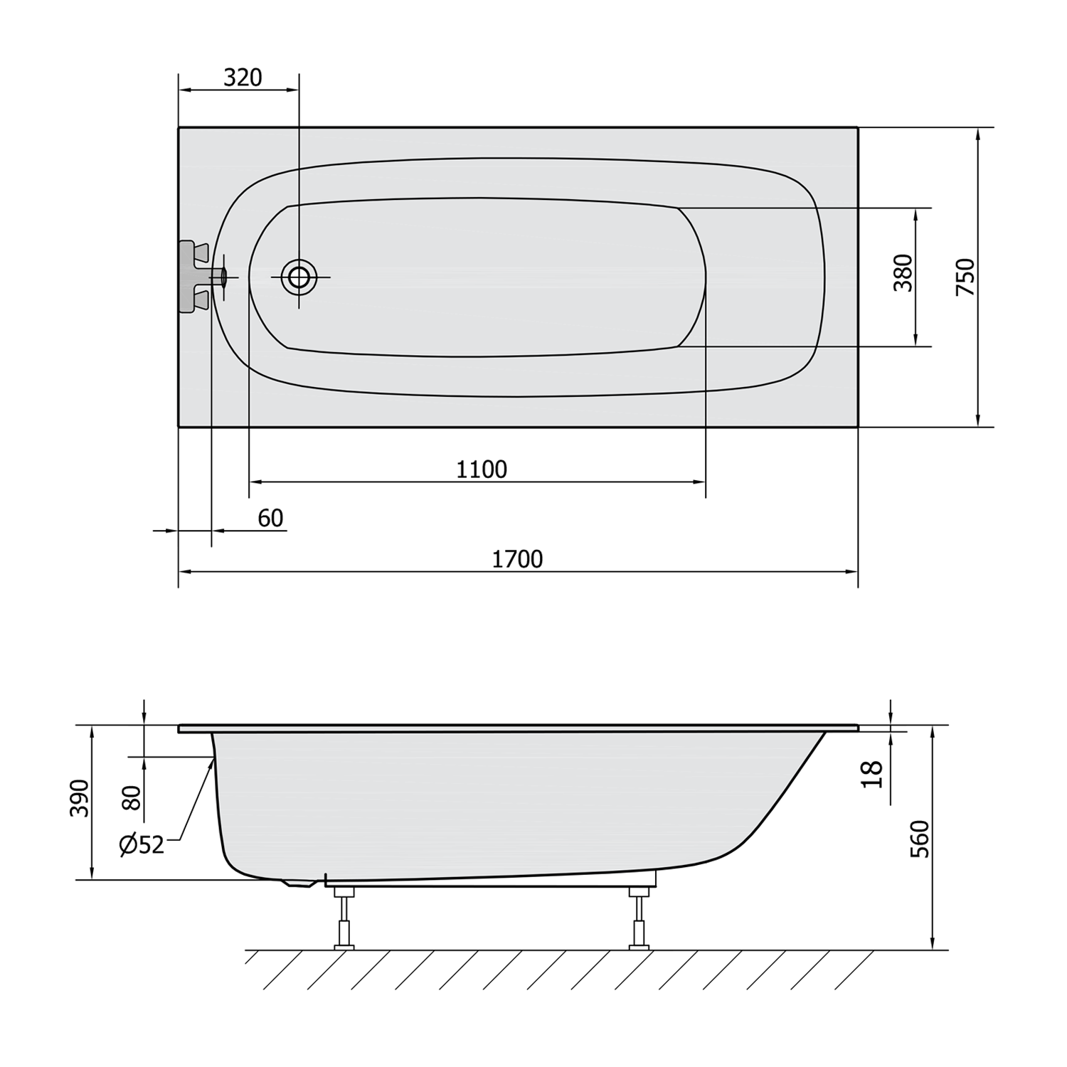 Wanna akrylowa prostokątna EBRO SLIM 170x75x39 cm to połączenie klasycznego kształtu wanny z nowoczesnym design.